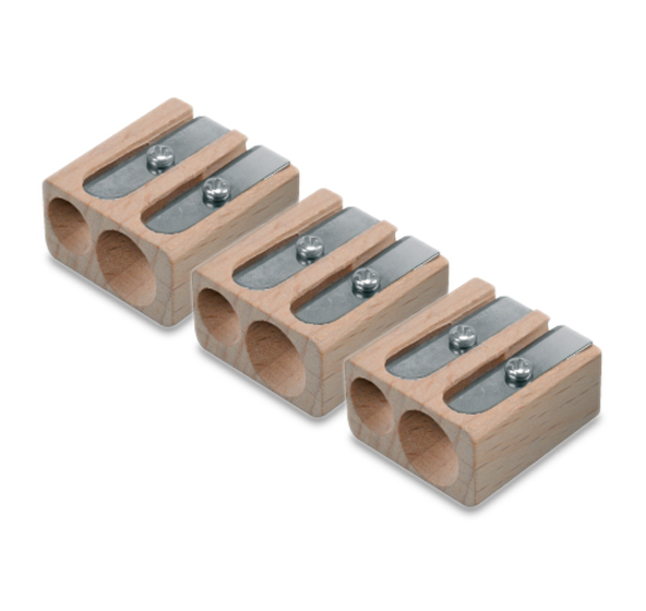 El Sacapuntas Pro Natural incluye 2 orificios útiles para lápices delgados de un diámetro máximo de 8 mm y otro para lápices gruesos de un diámetro máximo de 11 mm.